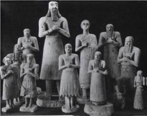 پوشاک سومریان؛ پوشش زنان و مردان منطقۀ جنوبی تمدن بینالنهرین.